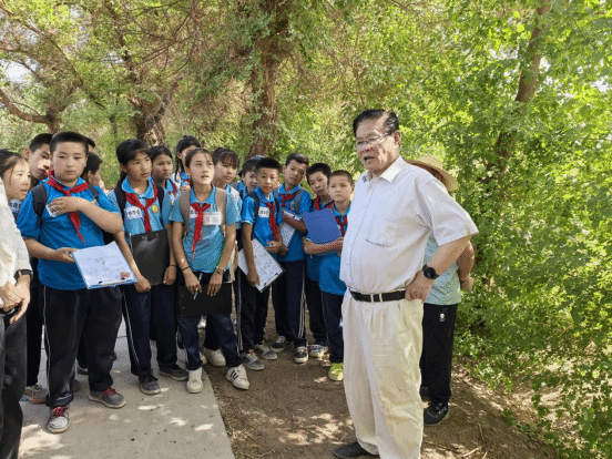 在植物園的自然觀察過程中,同學們偶遇了正在采樣的潘伯榮研究員。潘老師熱情地解答了孩子們的問題,并詢問他們對哪些植物感興趣。當孩子們見到這位植物園的老前輩時,眼中充滿了敬佩,并好奇植物園的年齡以及植物在這里生活了多久。當得知植物園已有53年歷史時,他們都驚訝地瞪大了眼睛。