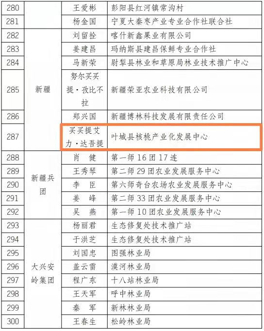日前,國家林業(yè)和草原局聘任了第三批300名國家林草鄉(xiāng)土專家,經(jīng)申報(bào)推薦、形式審查、專家評價(jià)和社會公示等環(huán)節(jié),全疆共有6人成功受聘,其中葉城縣核桃產(chǎn)業(yè)化發(fā)展中心買買提艾力·達(dá)吾提是葉城縣首位獲此殊榮的鄉(xiāng)土專家。