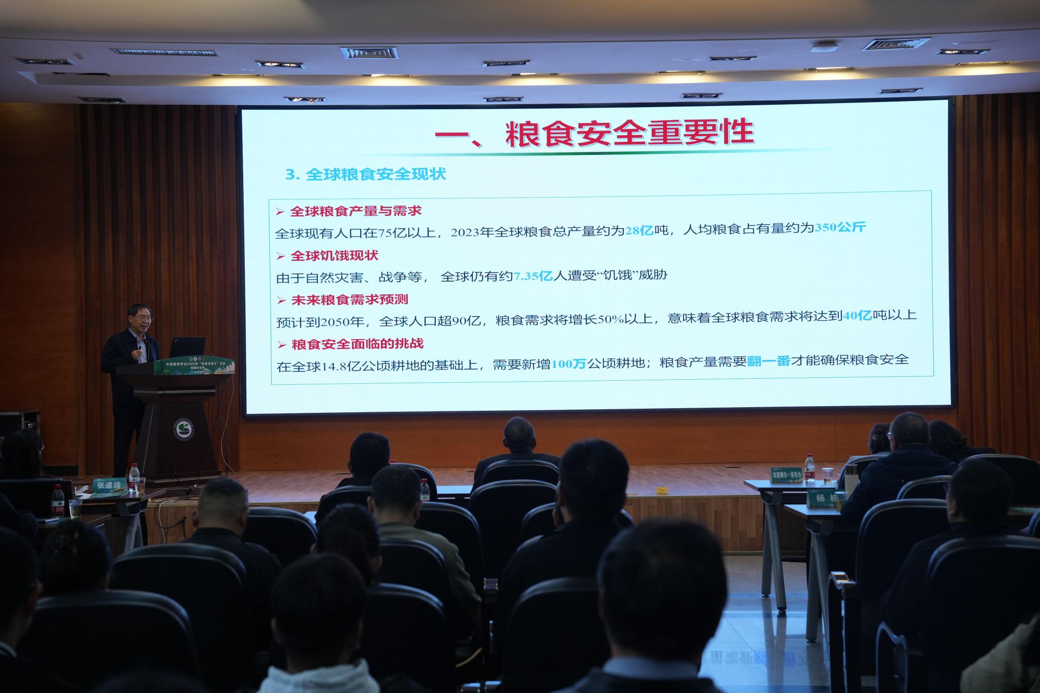 康振生院士首先做了《糧食安全與生物技術》的專題報告。作為我國植物病理學科的帶頭人,康院士從全球糧食安全面臨的挑戰(zhàn)入手,系統(tǒng)闡述了生物技術在保障糧食安全中的重要作用。他結合團隊在小麥條銹病、赤霉病等重大病害防控方面的研究成果,展示了如何通過現(xiàn)代生物技術手段實現(xiàn)作物病害的綠色可持續(xù)防控,為維護國家糧食安全提供科技支撐。