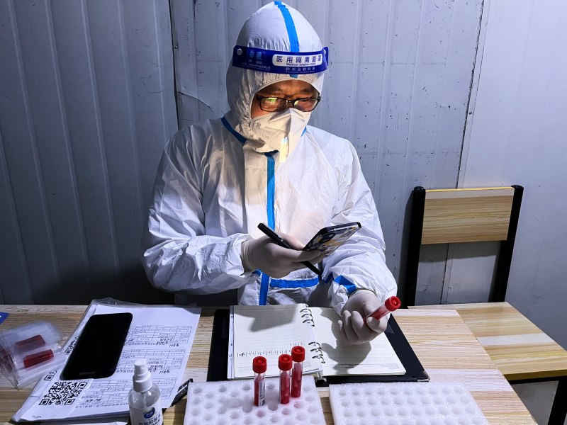 盛凱正在給村民們做核酸。(安迪爾鄉 供圖)
