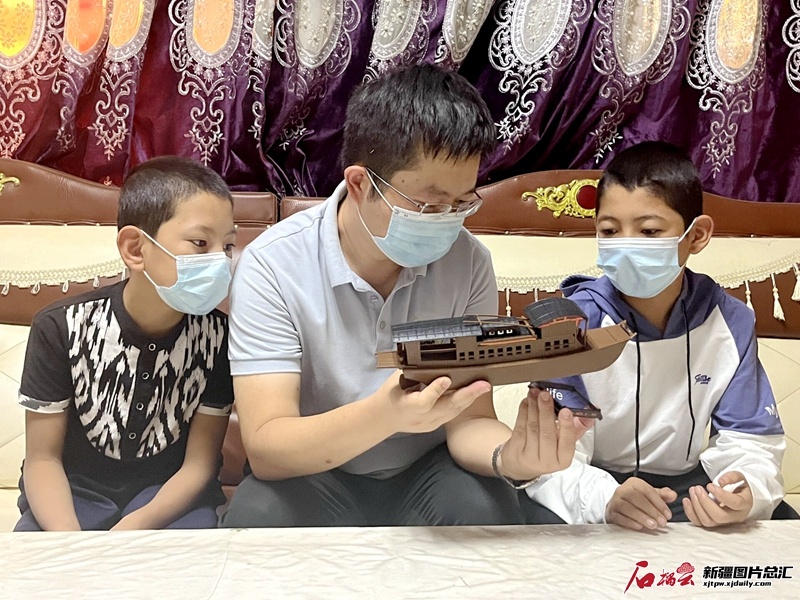 像這樣輔導(dǎo)孩子功課的一幕幕,過(guò)去幾年時(shí)常上演。身為新疆維吾爾自治區(qū)科協(xié)駐繁榮村“訪惠聚”工作隊(duì)隊(duì)員,盛凱自2017年與阿尤普一家結(jié)為親戚以來(lái),變著法子提升孩子的學(xué)習(xí)興趣,出點(diǎn)子幫阿尤普一家開(kāi)店,教授他們科學(xué)種植養(yǎng)殖知識(shí),是阿尤普家的“智多星”。