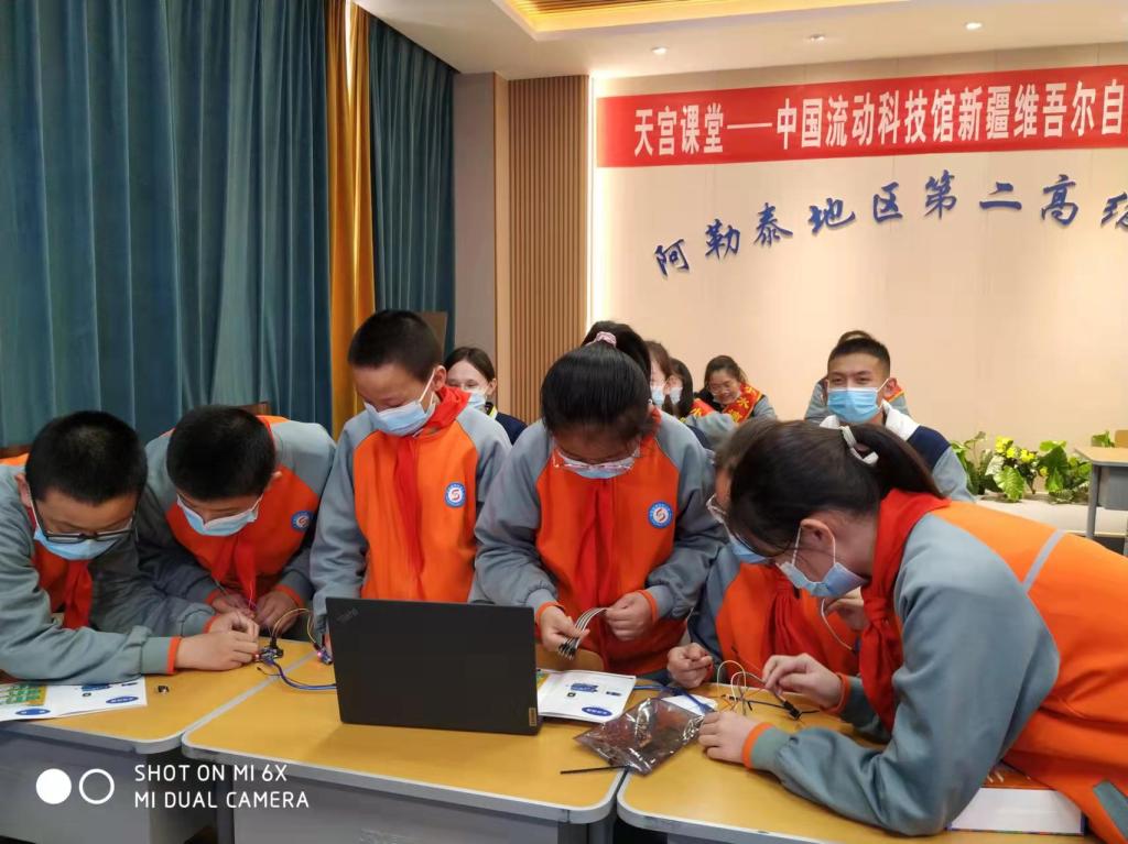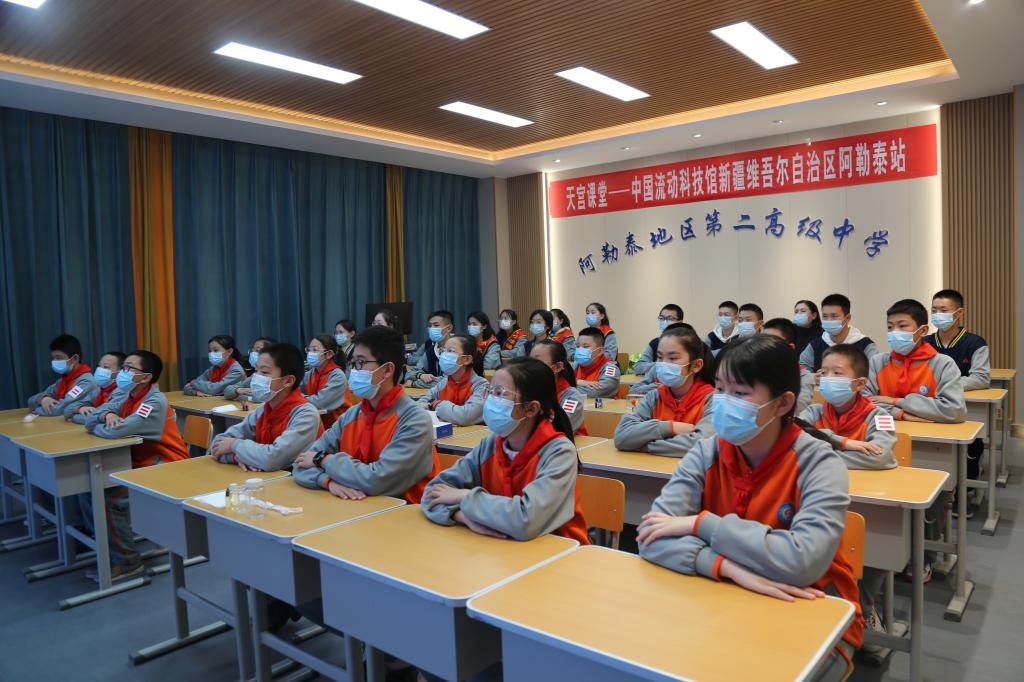 3月23日,在中國科技館、自治區科技館的大力支持下,阿勒泰地、市科協聯合開展“天宮課堂——中國流動科技館新疆維吾爾自治區阿勒泰站”活動,來自阿勒泰地區第二高級中學15名學生和阿勒泰地區實驗小學18名學生在阿勒泰天文館參加了觀看直播、拓展實驗、參觀體驗等一系列活動,阿勒泰市中小學1.8萬余名學生在各自所在的學校同步觀看了直播。