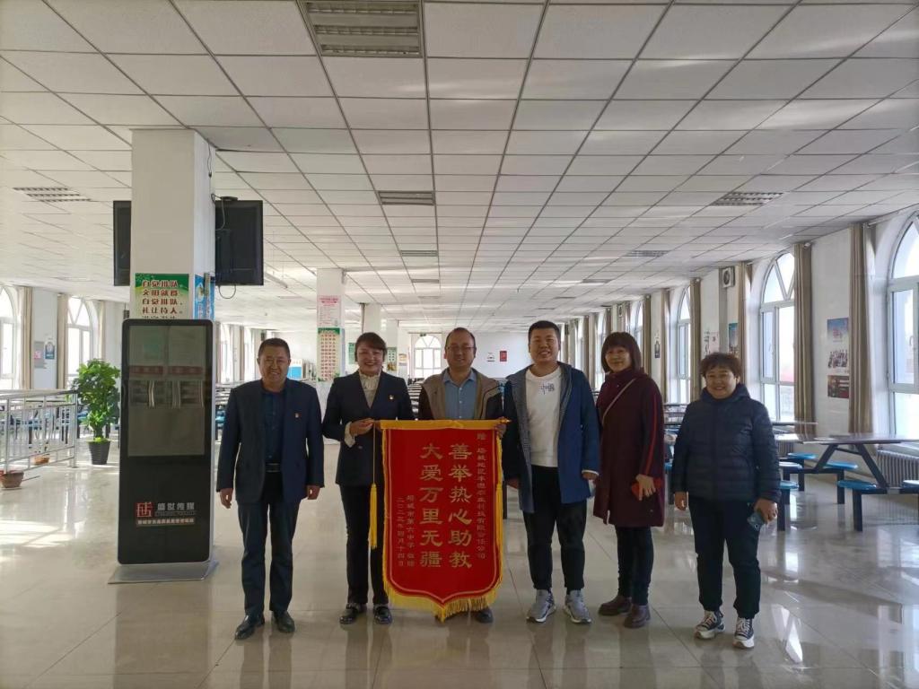 塔城市第六中學黨總支書記閔曉青向李少杰表示感謝,學校將以企業之善舉和愛心來加強師生感恩教育,培養師生社會責任感,充分利用好社會愛心捐贈物資,全力以赴做好學校教育教學工作,并回贈了錦旗。
