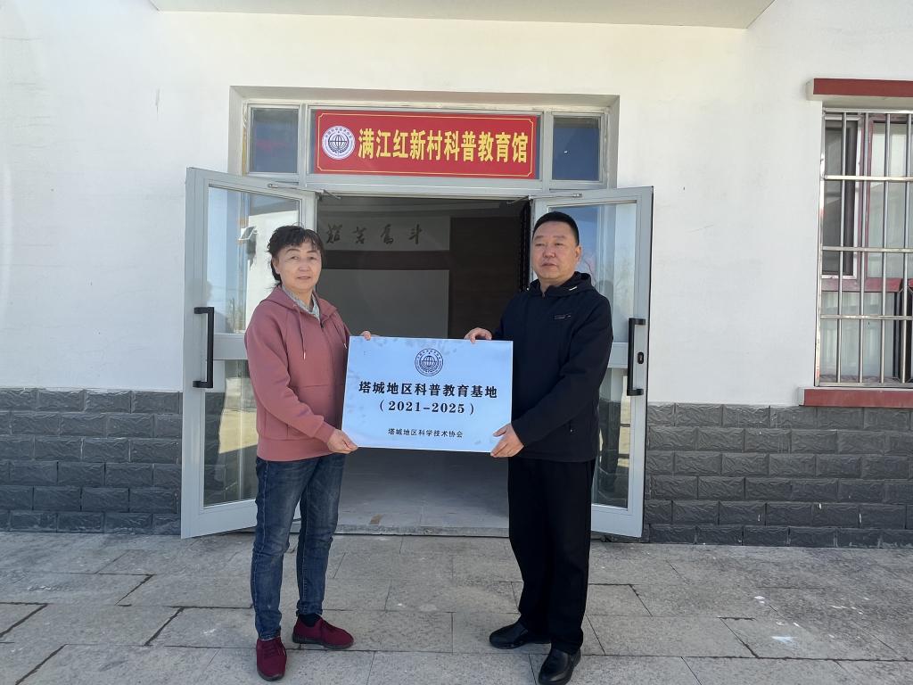 最后,塔城地區科協一行前往商戶地鄉滿江紅新村村史館,并為場館頒發了塔城地區科普示范教育基地(2021-2025)牌匾。調研過程中,商戶地鄉滿江紅新村工作人員對鄉村科普館擬建設情況進行了介紹。滿江紅新村村史館準備配備科普宣傳欄、科普長廊等科普設備,對滿江紅新村及周邊村隊群眾進行免費開放。