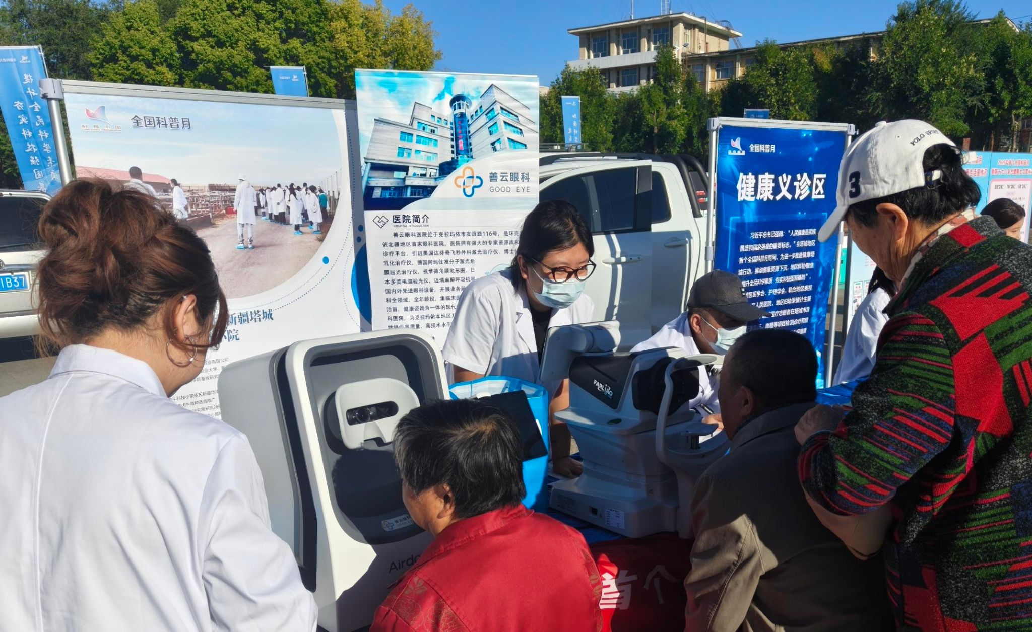 本次助力塔城地區科普月啟動儀式的還有克拉瑪依善云眼科醫院,他們為塔城各族群眾帶來了眼健康科普咨詢與義診服務,運用電腦驗光、鷹瞳智能AI眼底照相分析、裂隙燈初診等技術為139名群眾進行了基礎的眼健康檢查,發放了保護視力的書籍及葉黃素護眼貼。