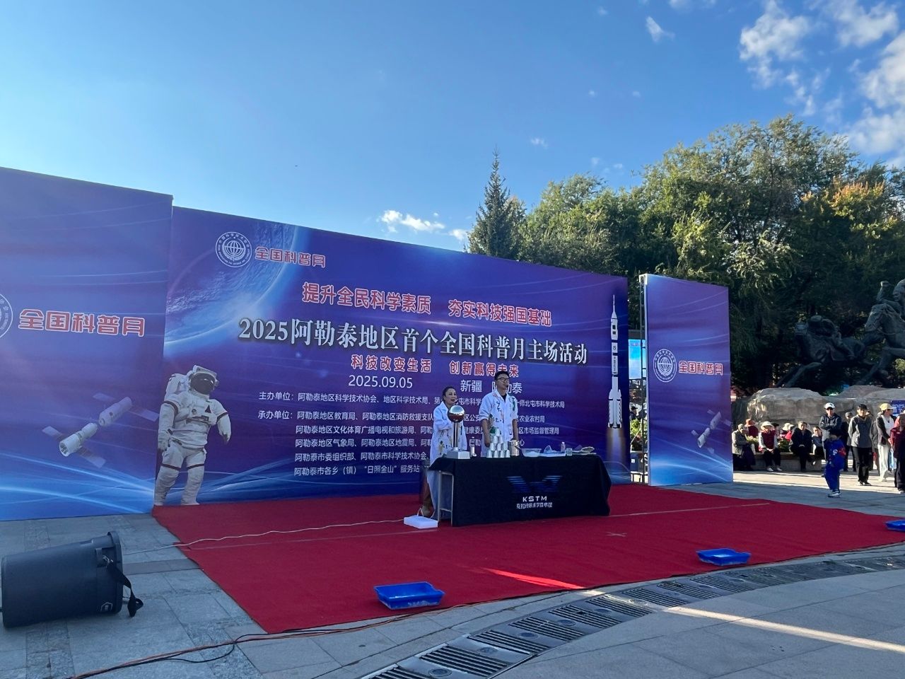 9月5日,克拉瑪依科技館受邀赴阿勒泰地區(qū),在阿勒泰地區(qū)全國科普月主場活動(dòng)開幕式上精彩亮相,以兩場沉浸式科學(xué)表演點(diǎn)燃當(dāng)?shù)厝罕姷目茖W(xué)熱情。