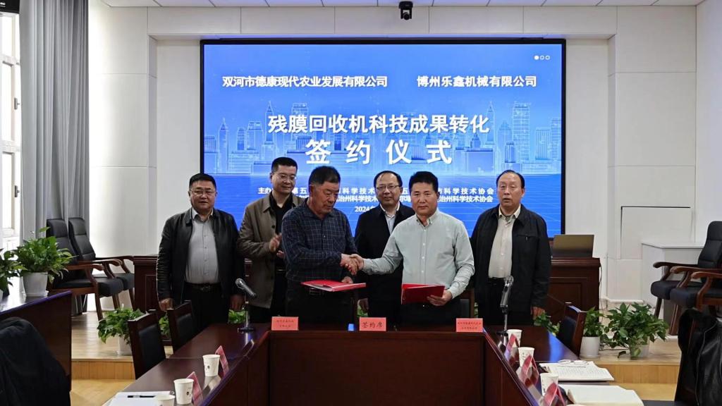 日前,博州科協(xié)與第五師雙河市科協(xié)聯(lián)合舉行兵地企業(yè)殘膜回收機(jī)專利技術(shù)轉(zhuǎn)化合作簽約儀式,博州樂(lè)鑫農(nóng)牧機(jī)械有限公司與第五師雙河市德康現(xiàn)代農(nóng)業(yè)發(fā)展有限公司達(dá)成合作協(xié)議,標(biāo)志著該項(xiàng)科技成果成功實(shí)施轉(zhuǎn)化。