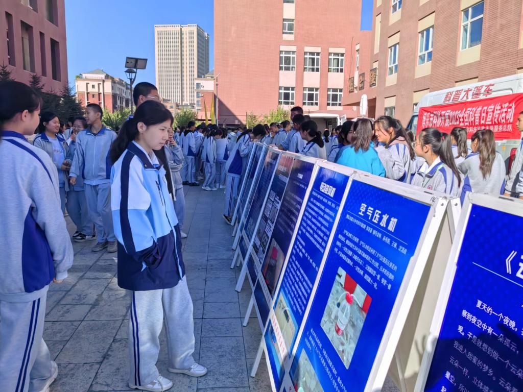 活動現場進行科普展品展示、自治州第22屆青少年科技創新成果展、反邪教警示教育、科學家精神展及科普短視頻展播等,學生在科技志愿者的帶領下,分年級、分時段、有序地進行了參觀和體驗,認真聆聽科技志愿者的詳細講解,通過親自動手操作,探索每一個科普展品的奧秘。