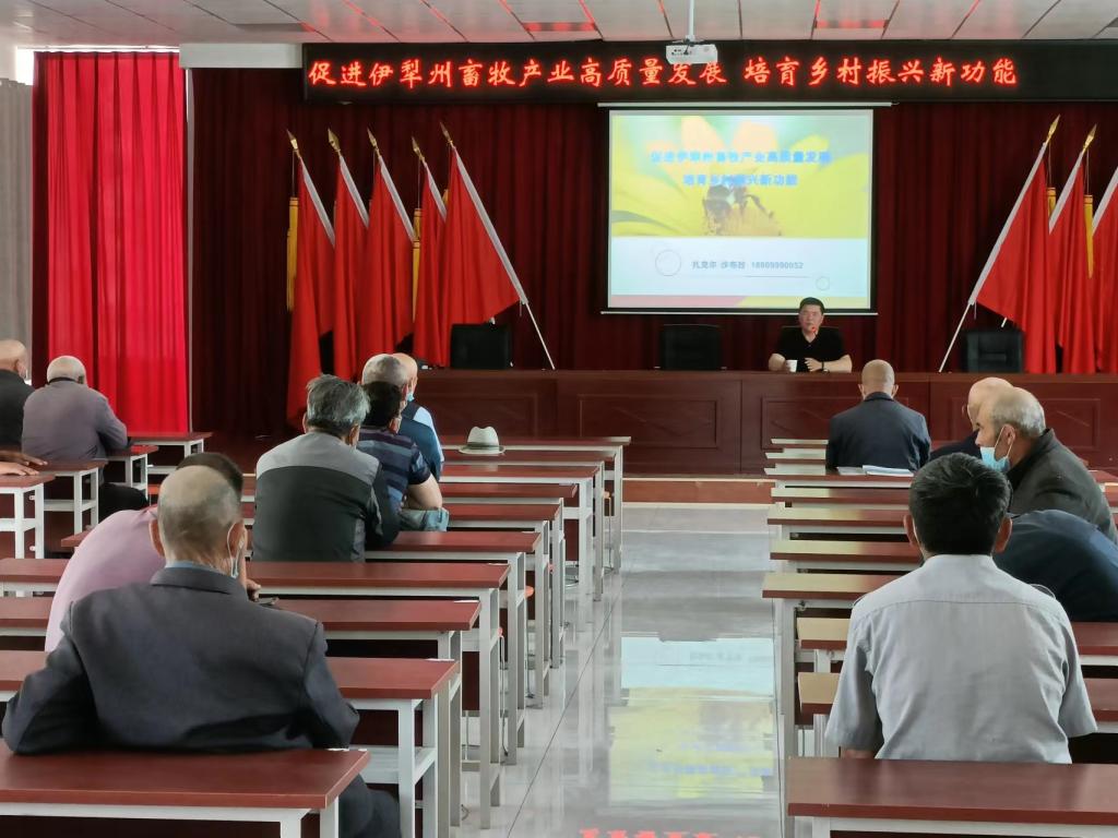 5月26日,在鞏留縣別斯沙拉村,州畜牧專家扎克爾老師為養殖戶們傳授畜牧產業如何高質量發展與防病知識,現場為牧民發放畜牧病蟲害防治手冊、《知識與力量》等科普書籍230冊,活動效果良好。