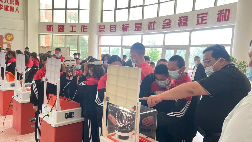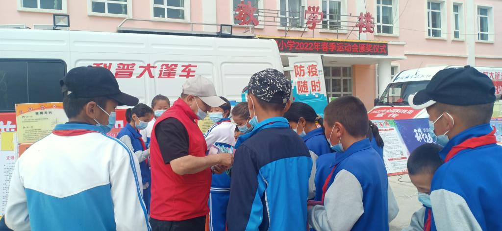 伊犁州科協少數民族科普工作隊隊長馬迪開展科普大篷車進校園宣傳活動