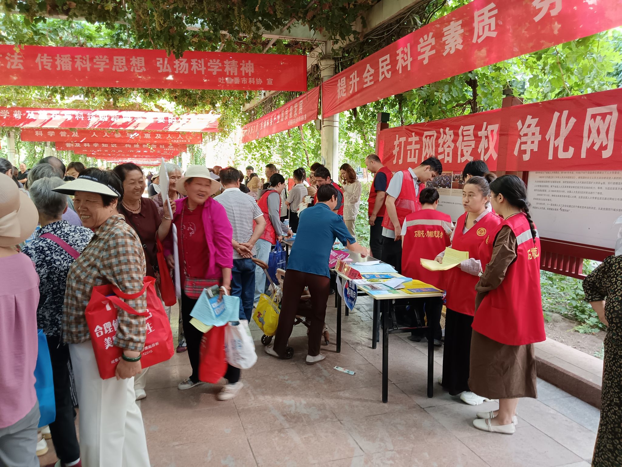 活動現場,吐魯番市科協出動科普大篷車,在青年中路葡萄長廊懸掛全國科普月宣傳橫幅22條、張貼全國科普月海報10張和標識50張、展出8類主題展板28張(其中鑄牢中華民族共同體意識展板7張)、科普展品7件,免費向現場群眾發放食品安全小常識、快速識別宗教和邪教漫畫手冊、地震避險漫畫手冊、防災減災從我做起、低碳生活快樂你我、節約用水從我做起、老年健康核心信息20條、養老詐騙防范指南、少數民族科普雜志等15種科普宣傳資料700份,科普宣傳用品70件,直接受益干部群眾430余人;其中科普中國宣傳單共50份。