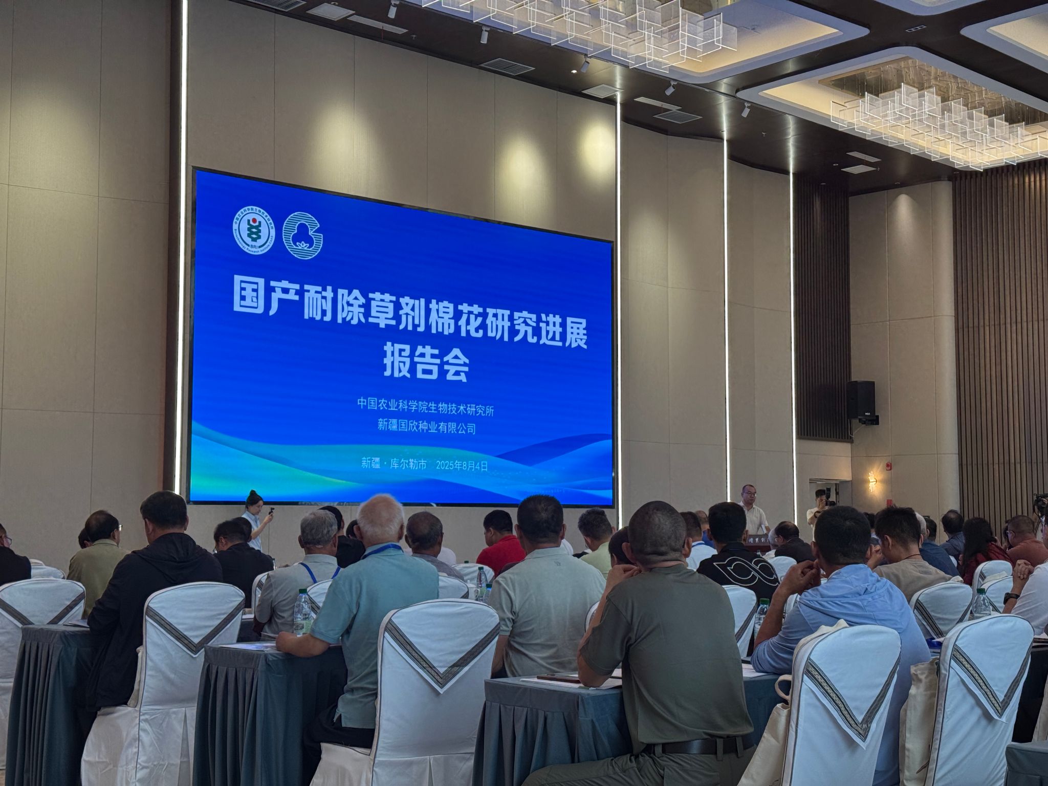 8月4日下午,“國產(chǎn)耐除草劑棉花研究進(jìn)展報告會暨現(xiàn)場觀摩會”在新疆庫爾勒市巴州種業(yè)創(chuàng)新園舉行。本次會議由中國農(nóng)業(yè)科學(xué)院生物技術(shù)研究所、新疆國欣種業(yè)有限公司聯(lián)合主辦。
